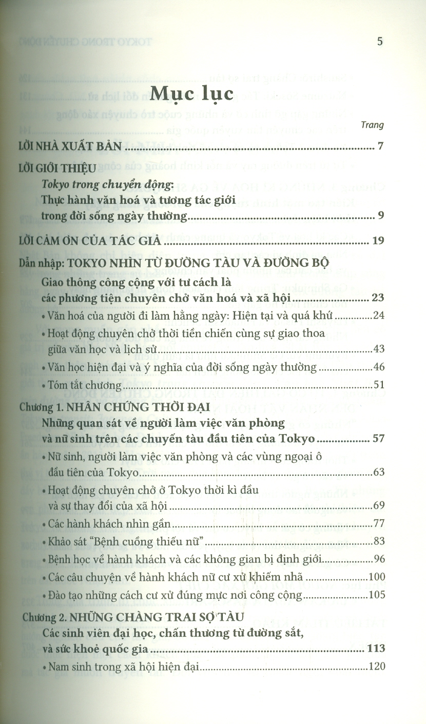 Từ những toa tàu đông đúc đến những con phố không bao giờ ngủ, Tokyo trong chuyển động: Văn hóa Nhật Bản trên đường tàu và đường bộ của Alisa Freedman không chỉ nghiên cứu hệ thống giao thông công cộng của Tokyo, mà còn là tấm gương phản chiếu xã hội Nhật Bản dưới một cách tiếp cận liên ngành độc đáo,