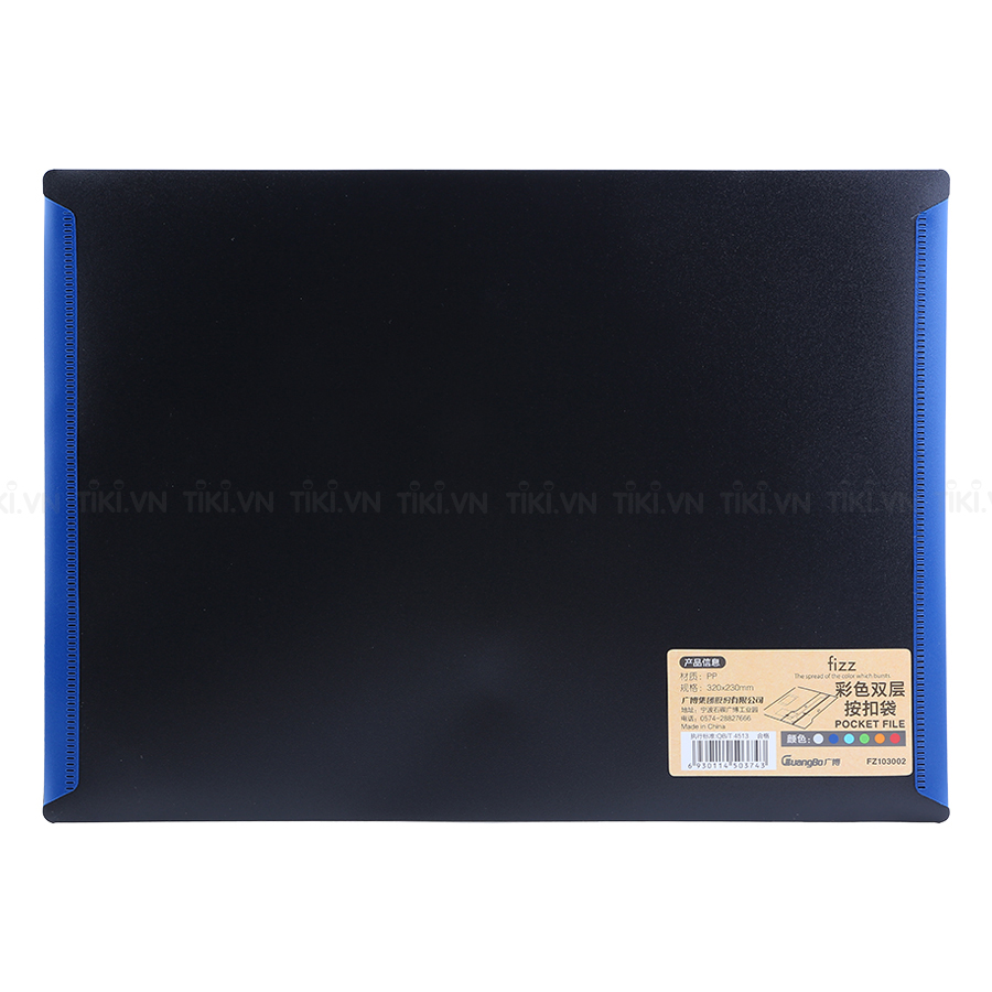 - Bìa Nút A4 Guangbo Fz103003 - Xanh Dương Đậm được làm bằng nhựa PP chắc chắn, chống thấm nước, cho độ bền cao, dễ dàng lau chùi khi bị bám bẩn. - Bìa có nút nhựa bên