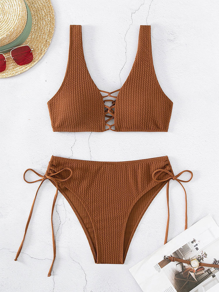 Bikini Tam Giác Kèm Khăn Lưới Chất liệu Polyester Đây là chất liệu không quá xa lạ đối với may đồ bơi nữ. Sợi Polyester rất nhẹ, có khả năng chống thấm và khô nhanh.