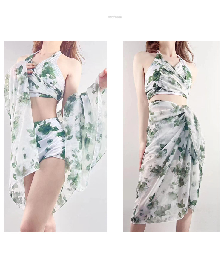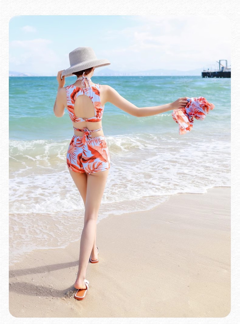 Set Đồ Bơi Nữ Rời Đùi Dài Tay Đi Biển Đi Bơi Chất liệu Polyester 88%, mật độ dệt vừa Áo có sẵn lớp đệm, hông áo có thể rút lên làm croptop cá tính