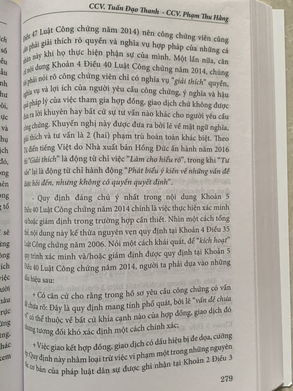 Nhằm tiếp tục góp phần nâng cao ý thức pháp luật cho người dân và doanh nghiệp, Nhà xuất bản Tư pháp xuất bản cuốn "Bình luận Luật Công chứng 2014" của Công chứng viên Tuấn Đạo Thanh và Công chứng viên Phạm Thu Hằng. Trong mỗi chương các tác giả đều trình bày nhận xét tổng quan, tiếp đó phân tích, bình luận từng điều luật dựa trên kinh nghiệm hành nghề thực tế của bản thân xuất phát từ yêu cầu, đòi hỏi khách quan của cuộc sống và được so sánh với nội dung những văn bản quy phạm pháp luật điều chỉnh một số lĩnh vực có liên quan mật thiết đến hoạt động công chứng, đồng thời đề cập một số quan điểm còn có thể có ý kiến đa chiều để bạn đọc tiếp cận. Dù các tác giả đã dành sự tâm huyết và cố gắng trong quá trình biên soạn nhưng cuốn sách khó tránh khỏi những hạn chế, thiếu sót nhất định. Các tác giả và Nhà xuất bản rất mong nhận được ý kiến đóng góp của bạn đọc. Trân trọng giới thiệu!