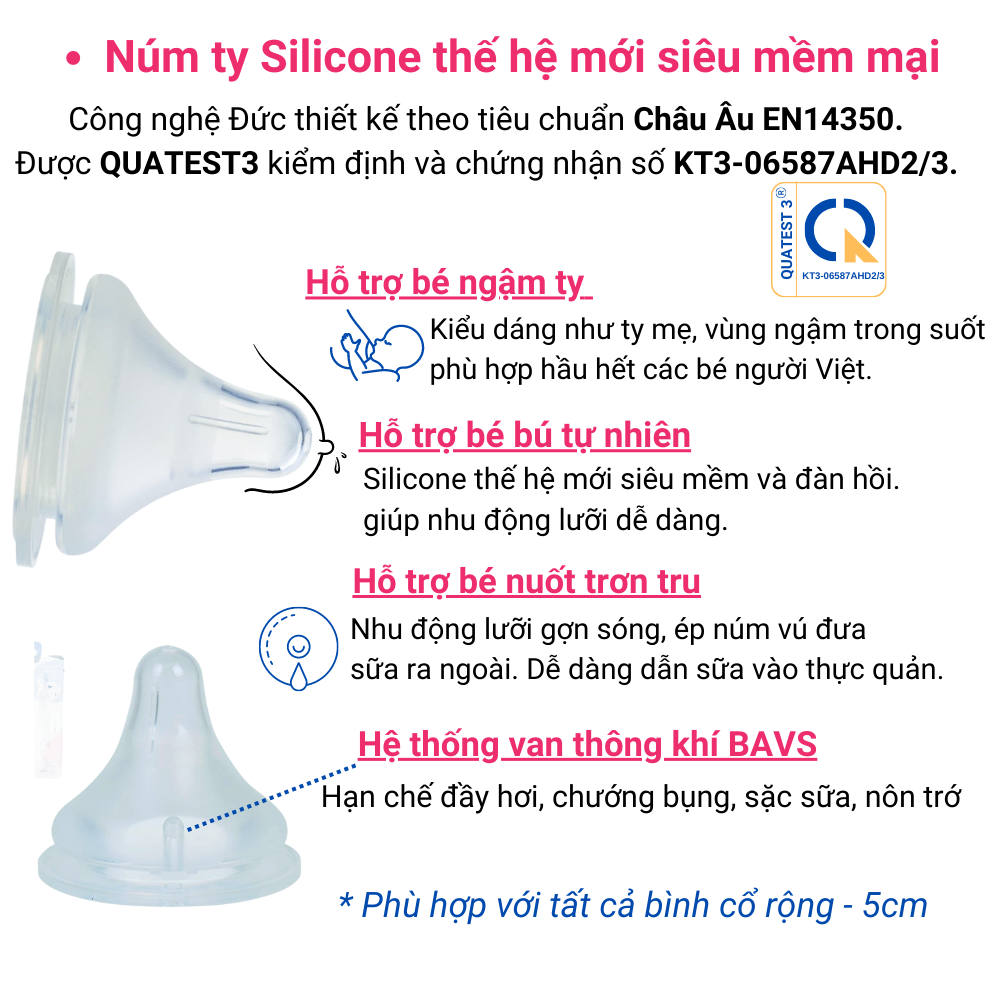 Chất liệu PPSU cao cấp không chứa BPA độc hại, đảm bảo an toàn tuyệt đối với bé sơ sinh. Khả năng chịu nhiệt lên tới 180 độ C, có thể sử dụng trong tủ