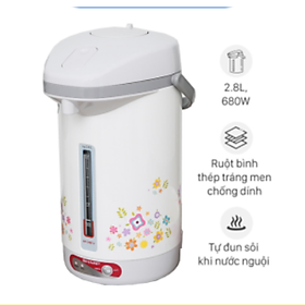 THÔNG SỐ KỸ THUẬT: - Dung tích: 2.9 lít - Công suất: 670W - Chức năng: Đun sôi, Giữ nóng - Mức nhiệt giữ nóng: Đun sôi 90°C, Giữ ấm 80°C - Chất liệu: Ruột