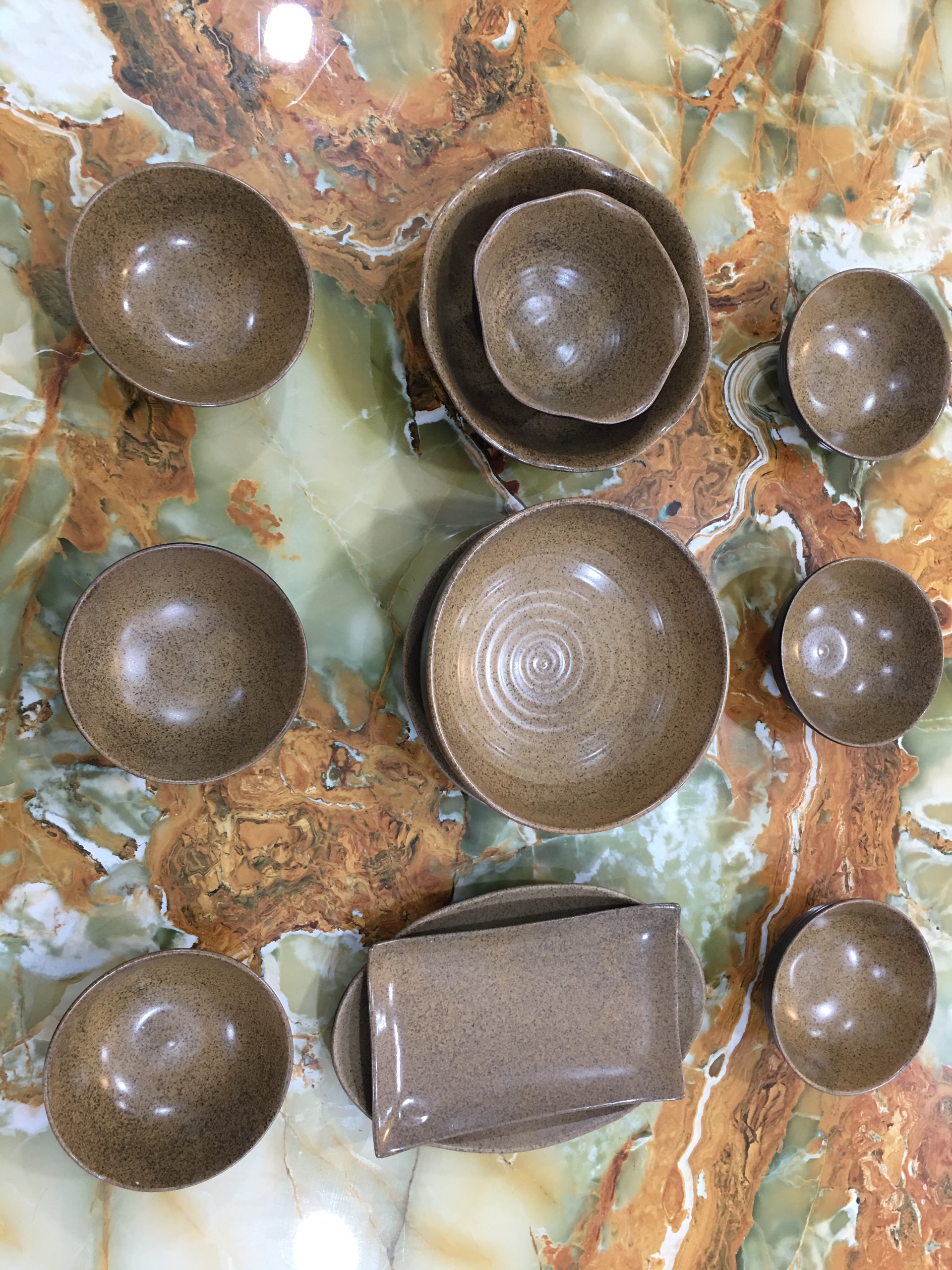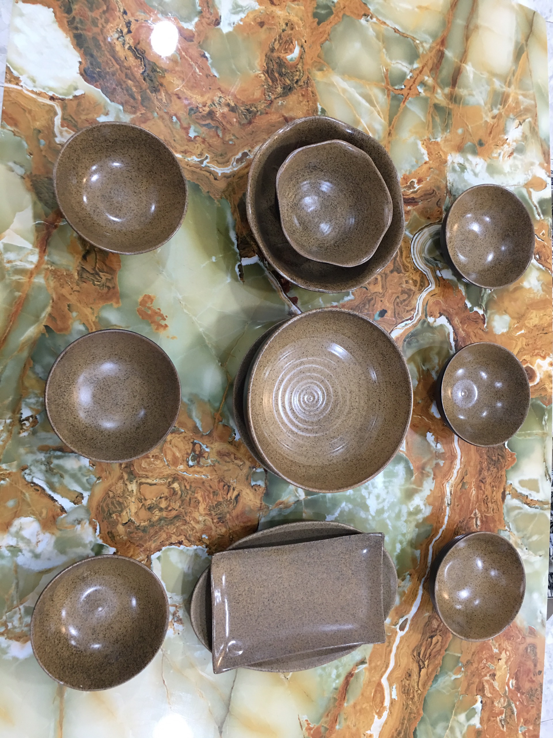 Bộ đồ ăn men cánh gián hoả biến sản phẩm đẹp và đẳng cấp ( khác với sản phẩm gốm thông thường của bát tràng) sản phẩm sứ Unika Bát Tràng nung ở nhiệt độ