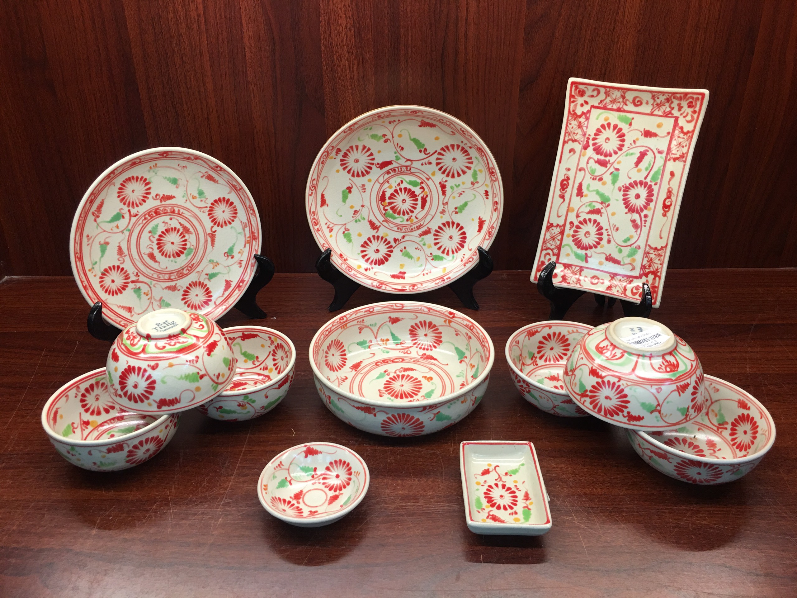 ✨Bộ 12 Sản Phẩm Vẽ Hoa Văn Đỏ Cao Cấp Gốm Sứ Bát Tràng
