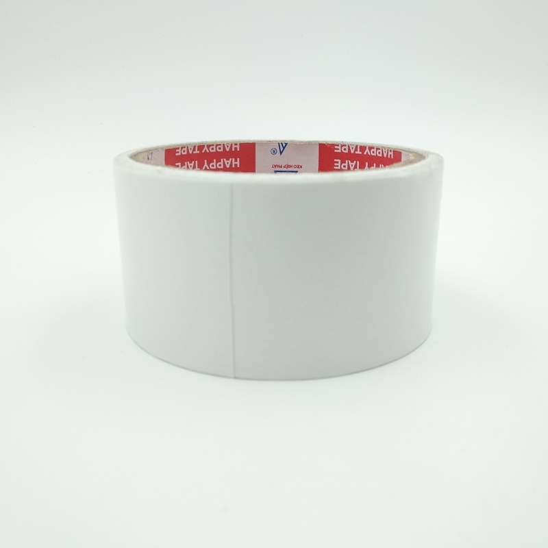 - Băng keo hai mặt ở chính giữa có một lớp giấy lụa dẻo và dai được phủ lên 2 lớp keo cho cả 2 mặt giấy, sử dụng loại keo có độ dính rất