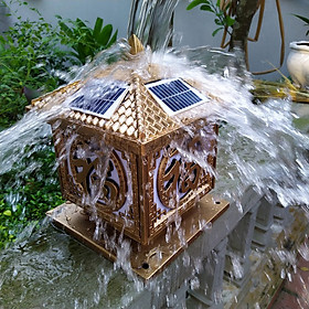✨Bộ 2 cái đèn trụ cổng Tài Lộc năng lượng mặt trời khung nhôm 25x25x32cm