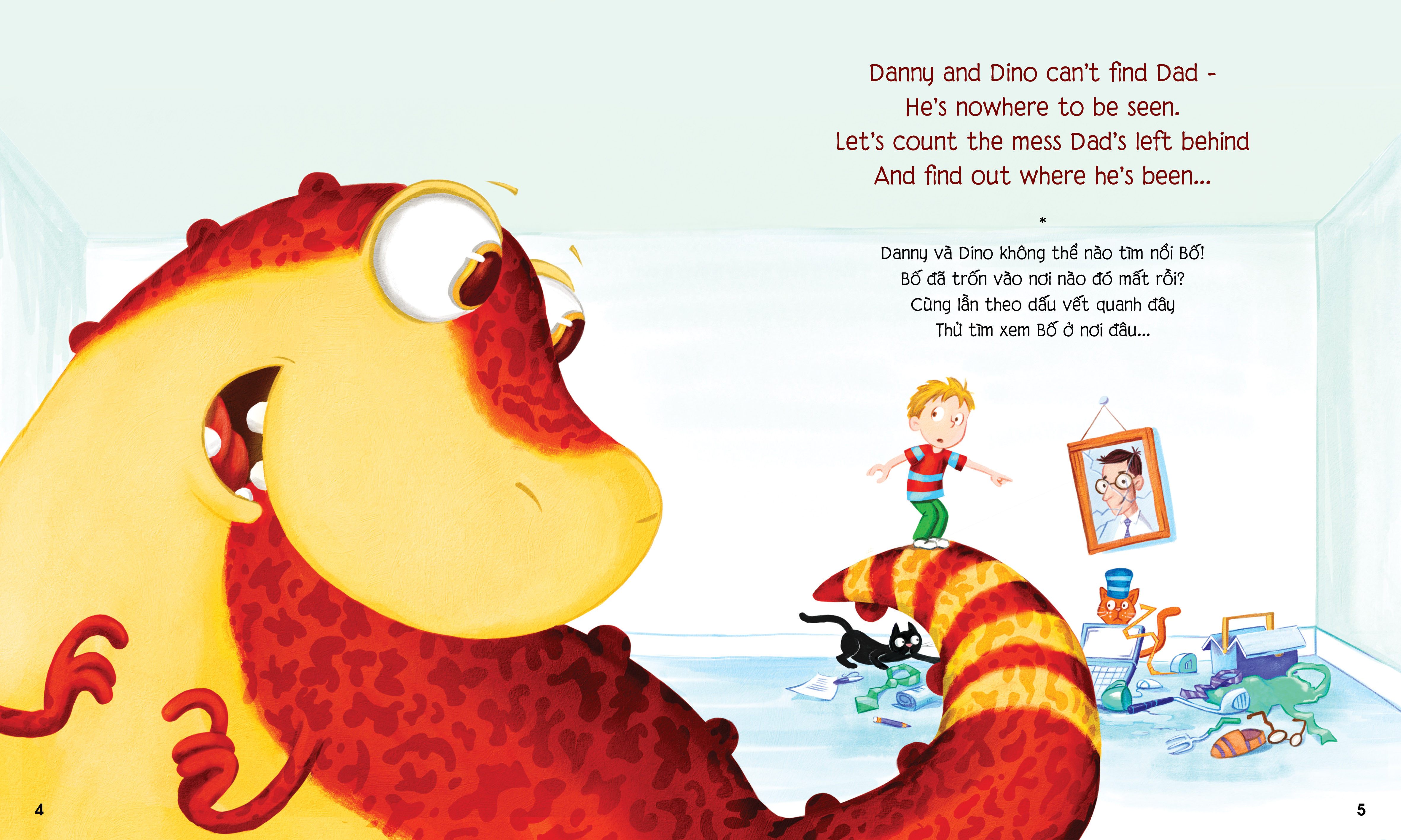 Chú khủng long tham ăn SONG NGỮ dành cho lứa tuổi mẫu giáo và tiểu học (2-8 TUỔI) là thế giới đầy sắc màu của đôi bạn thân Danny và chú khủng long Dino dễ thương nhưng háu ăn. Hễ đói, chú ăn tất tật mọi thứ trong tầm mắt, từ chiếc giường, nàng công chúa, bố, mẹ, bà, ngôi nhà đang ở, cầu vồng và thậm chícả một hành tinh khổng lồ. Nhưng ăn xong, cậu đều hối hận vô cùng và đều rút ra được bài học cho bản thân. Cuối cùng, để sửa chữa sai lầm, cậu quyết định ị ra trả lại mọi thứ nguyên vẹn.