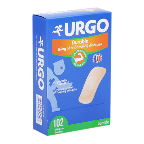 - Bộ 2 Hộp Băng Cá Nhân Urgo Durable (Hộp 102 Miếng) rgo Durable có nền vải co giãn, độ dính cao trên mọi vị trí, kể cả vị trí khó - Urgo Durable có nhiều