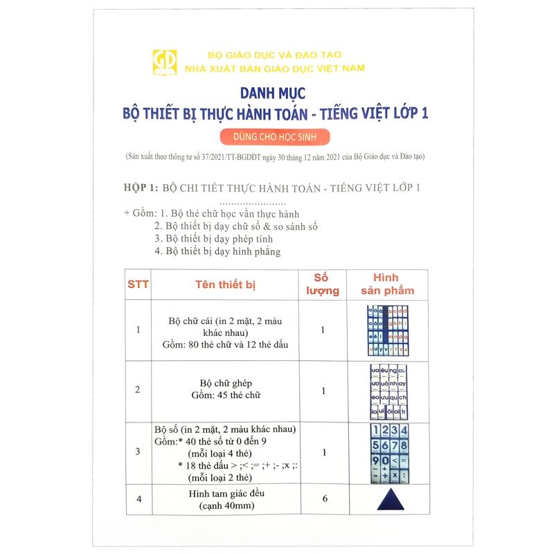 Bộ đồ dùng Thực Hành Toán - Tiếng Việt Lớp 1 dùng chung cho mọi bộ sách giáo khoa lớp 1 mới.