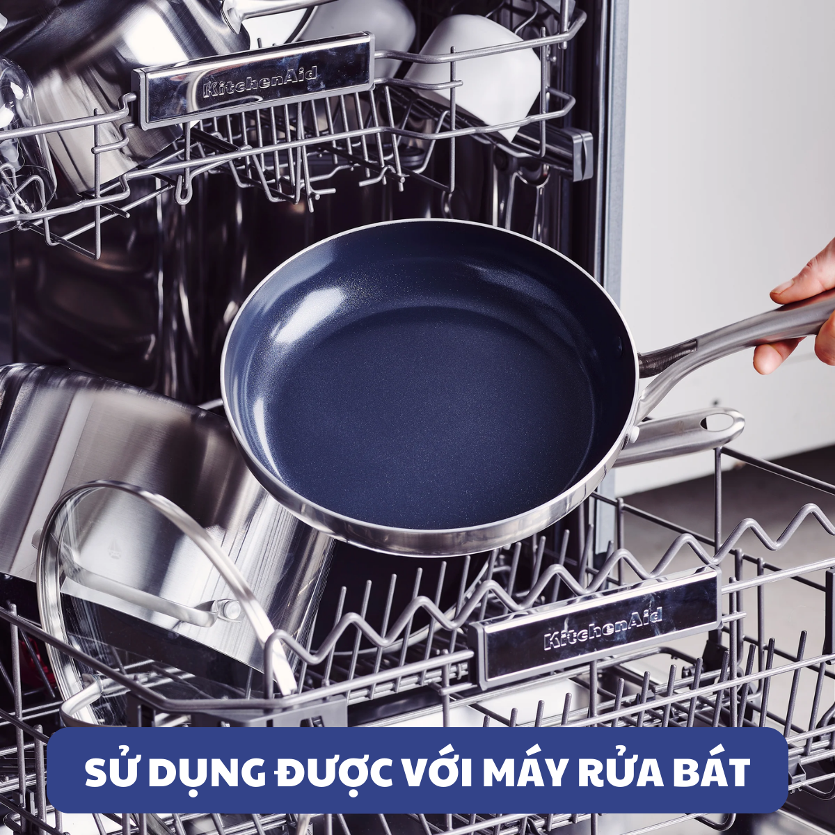 Có khả năng chống trầy xước và nhiệt độ cao lên đến 400 độ, tay cầm có thể tháo rời để sử dụng an toàn trong lò nướng lên đến 250 độ. Được làm từ
