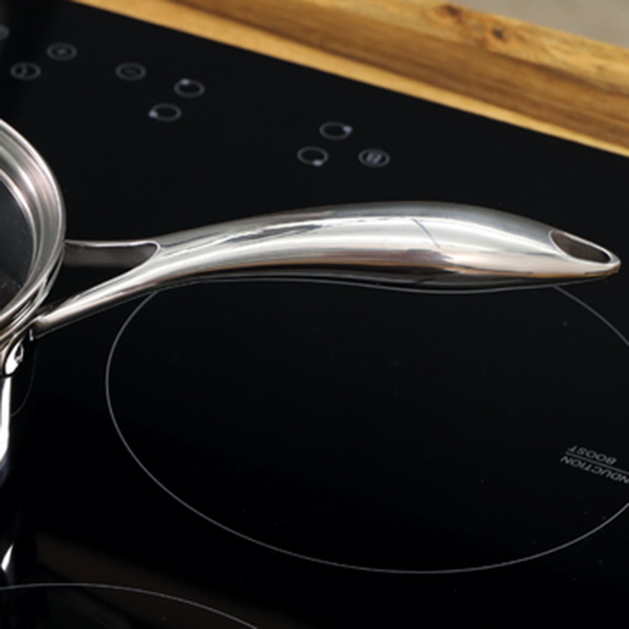 Cấu trúc inox 3 lớp, vỏ ngoài là INOX 430 để bắt từ, thích hợp với mọi loại bếp Từ kể cả những bếp kén nồi chảo; lớp giữa dầy 1.2mm là NHÔM để dẫn và giữ nhiệt, lớp trong tiếp xúc với thực phẩm là INOX 304 tốt cho sức khoẻ.