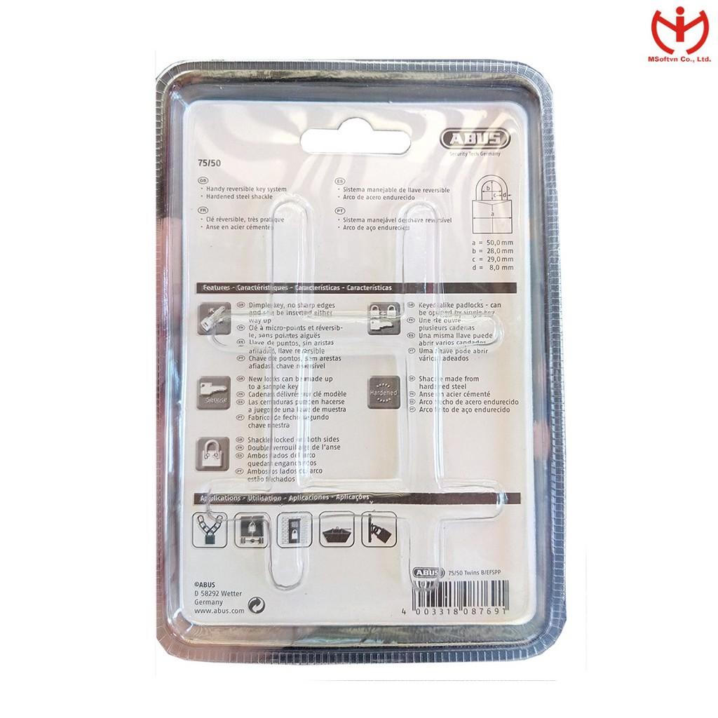 BỘ 2 Ổ KHÓA ABUS 75/50 CT THÂN ĐỒNG RỘNG 50MM DÙNG CHUNG 4 CHÌA VI TÍNH