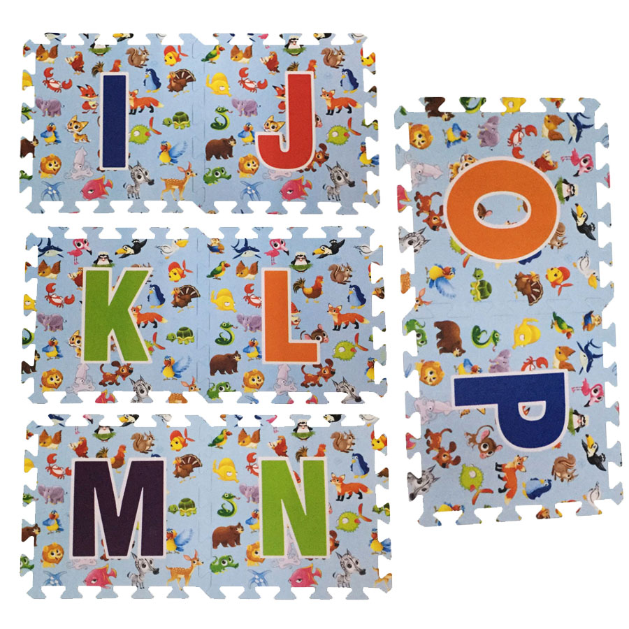 - Bộ 26 chữ cái thảm xốp lót sàn an toàn Thoại Tân Thành (30x30cm) (loại mới) giúp bé làm quen với các chữ cái đầu tiên đồng thời bé còn được học cả một thế giới động vật ở trên không, mặt đất và cả dưới nước như: chim két, bồ nông, chim cánh cụt, gấu, cún con, sóc, cua, cá, sử tử, voi …dưới nền thảm màu xanh nhạt làm nổi bật 26 chữ cái và các loài động vật.