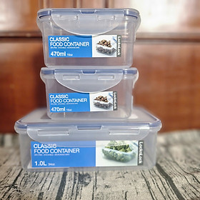 ✨Bộ 3 Hộp Nhựa Classic Lock&Lock Hình Chữ Nhật Khóa 4 Cạnh Kín Hơi (1 Hộp 1L và 2 Hộp 470ml)