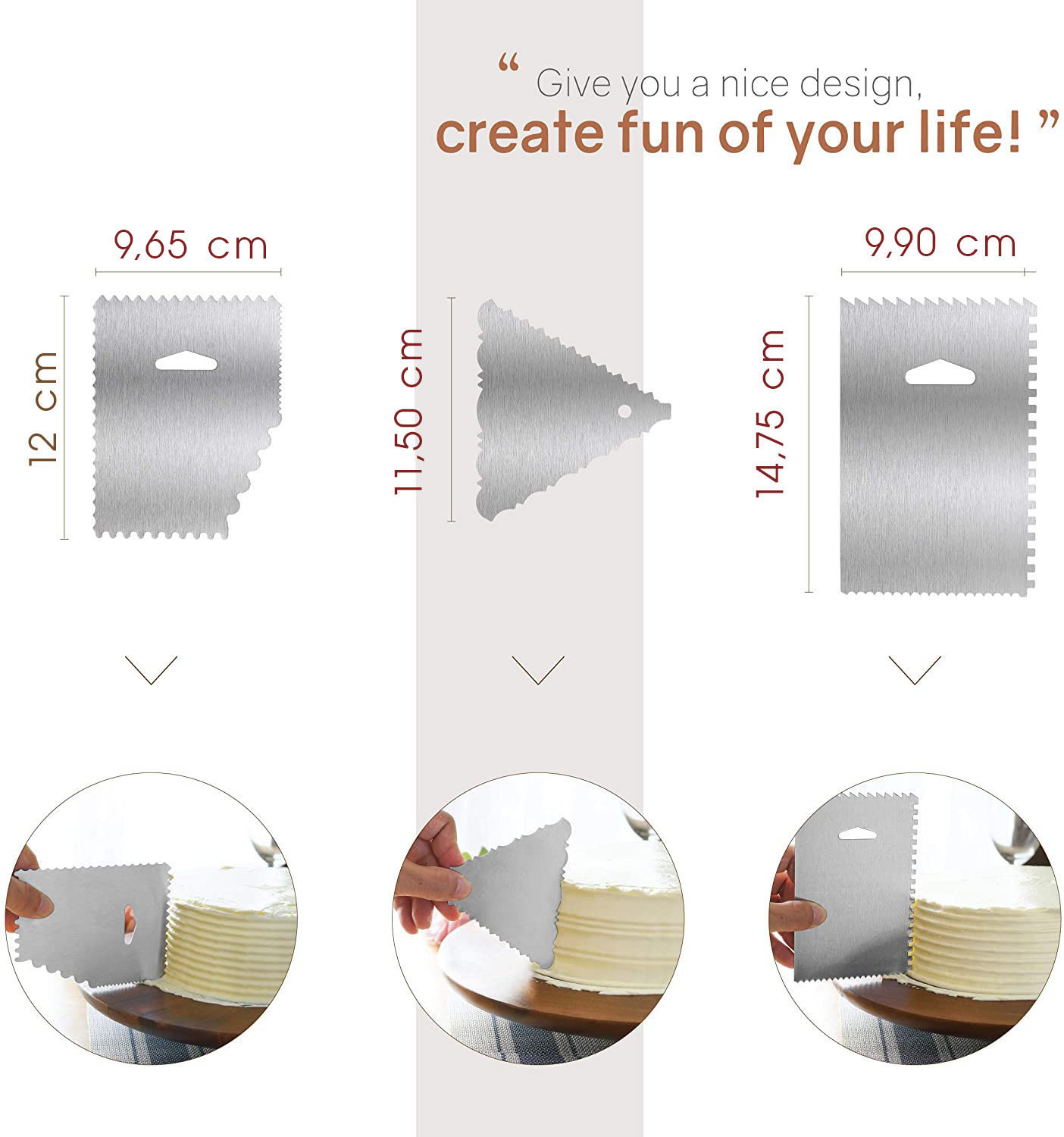 Bạn là người yêu thích làm bánh kem và luôn muốn sáng tạo những mẫu bánh đẹp, độc đáo với Bộ 3 miếng dao chà láng, vét bột, tạo vân bánh kem sẽ giúp bạn thoả sức sáng tạo cho tác phẩm nghệ thuật của mình.