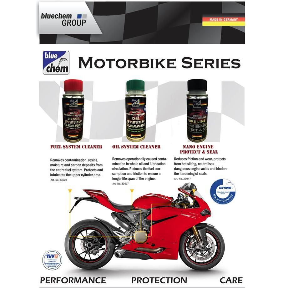 - Dung Dịch Vệ Sinh Hệ Thống Xăng Cho Mô Tô Xe Máy Bluechem Fuel Sysem Cleaner loại bỏ những tạp chất được tạo ra trong quá trình hoạt động của toàn bộ hệ thống
