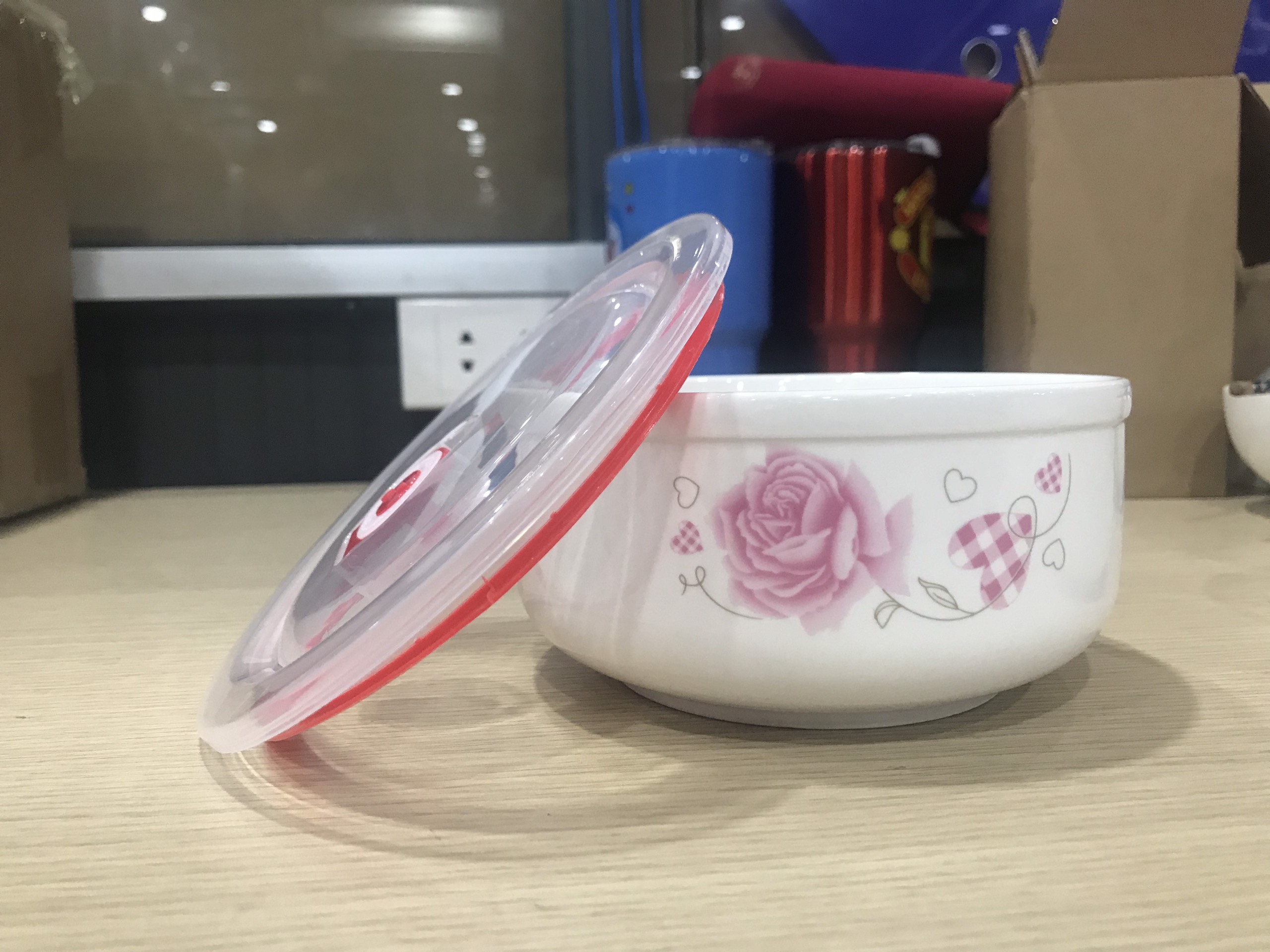 - Bộ 3 bát sứ có nắp hút chân không