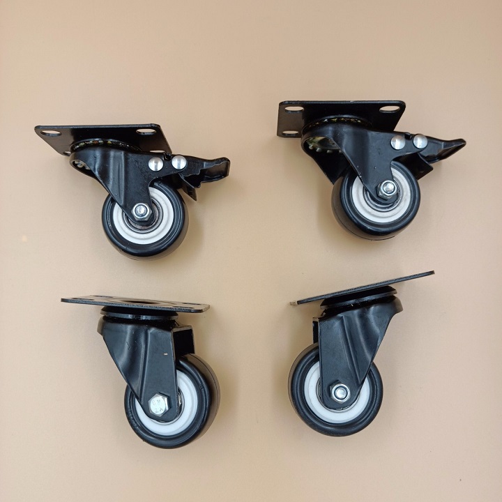 - Bộ sản phẩm gồm: 2 Bánh xe đẩy có khóa, 2 Bánh xe đẩy không có khóa Φ50mm rộng 32mm, tổng tải 150kg
