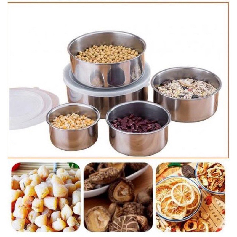 • Bộ 5 bát inox cao cấp có nắp đậy với thiết kế thông minh vói bát được làm bằng chất liệu inox không rỉ đặc biệt an toàn đẹp sáng bóng.