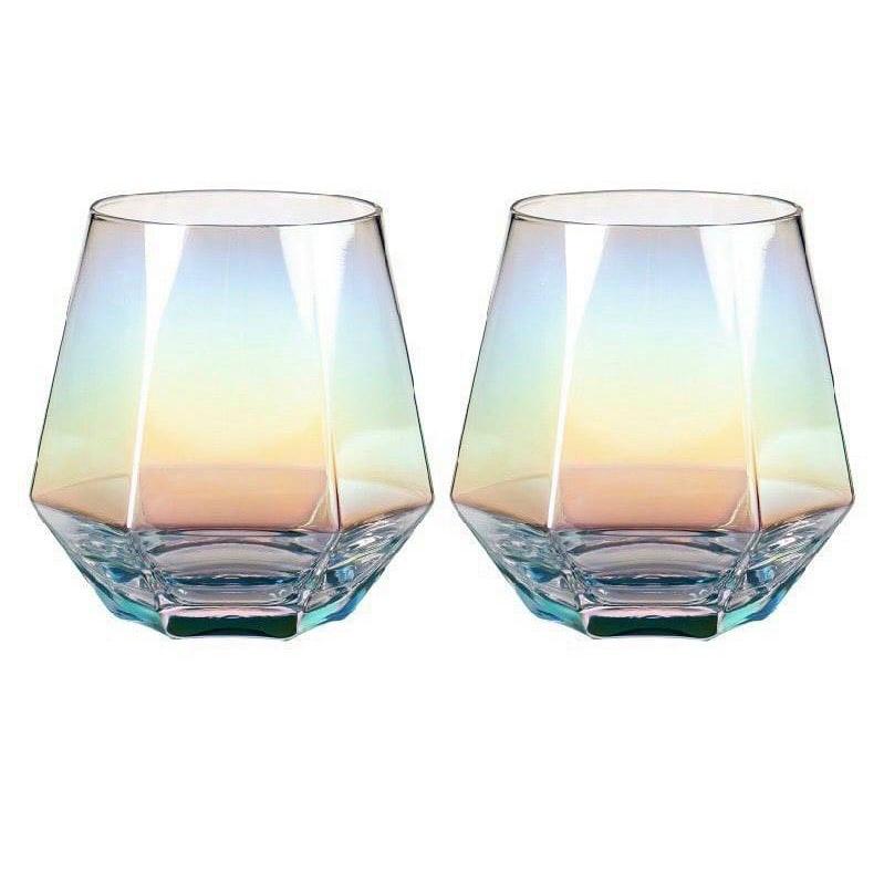 ✨Bộ 6 ly thủy tinh chịu nhiệt cao cấp dùng uống nước hoặc rượu tây vân kim cương ánh xanh
