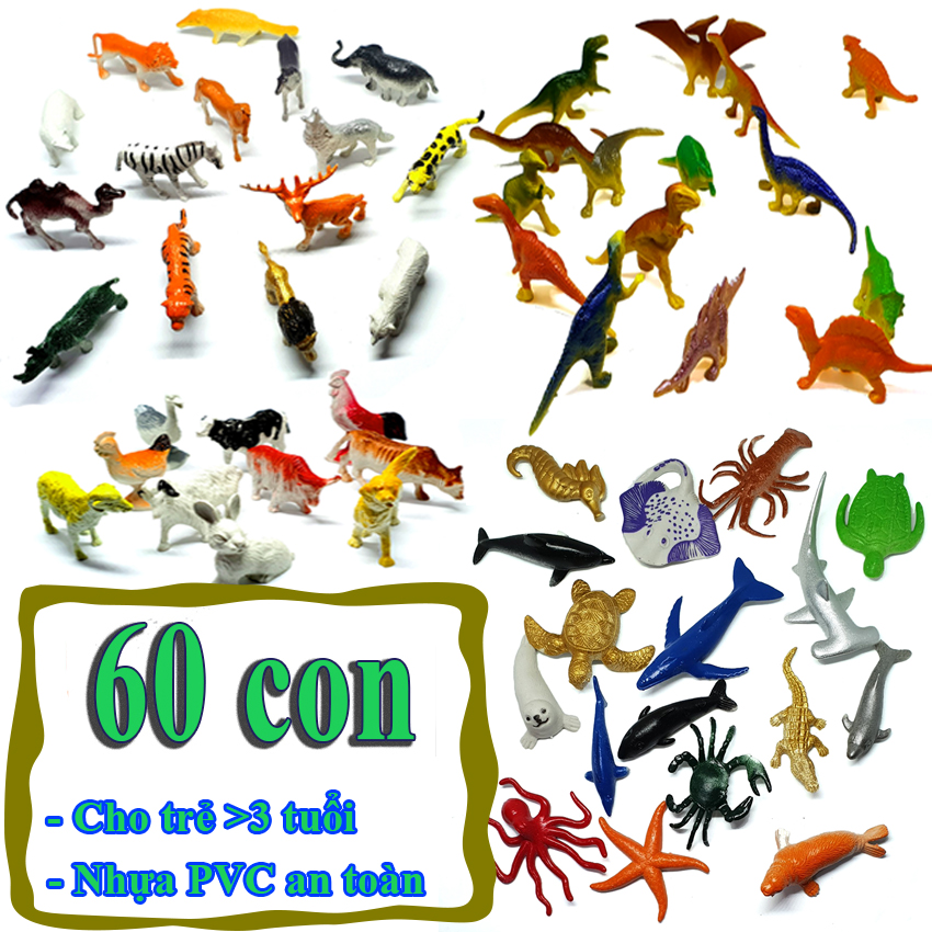 Mô hình thế giới động vật 60 chi tiết ANIMAL WORLD cho bé trên 3 tuổi (Xanh):