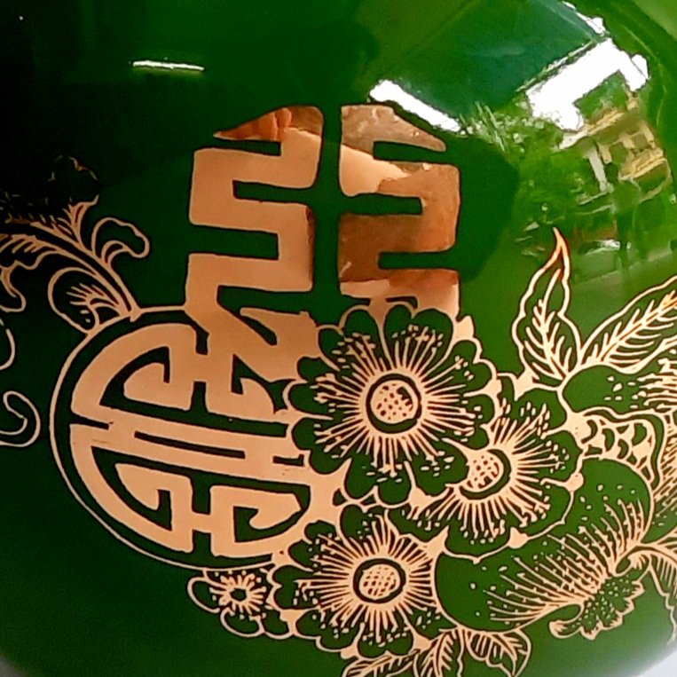 Mua tại TiktokBộ ấm chén bưởi rêu đào thọ vẽ vàng 24k gốm sứ Bát Tràng cao cấp Bộ ấm chén bưởi rêu đào thọ vẽ vàng 24k là sản phẩm hội tụ được nét tinh xảo của bàn tay Nghệ nhân Bát Tràng. Bên ngoài được tráng một lớp men xanh ngọc độc đáo kết hợp với các họa tiết viền vàng kim 24k đảm bảo sự sang trọng quý phái Bình trà được thiết kế vừa vặn, chắc chắn, miệng bình được thiết kế vô cùng chuẩn xác, không bị rỉ nước, đặc biệt ngắt dòng tuyệt đối khi rót giúp cho thao tác được gọn gàng, không làm vấy bẩn ra bàn hay khăn trải. Mô tả sản phẩm: