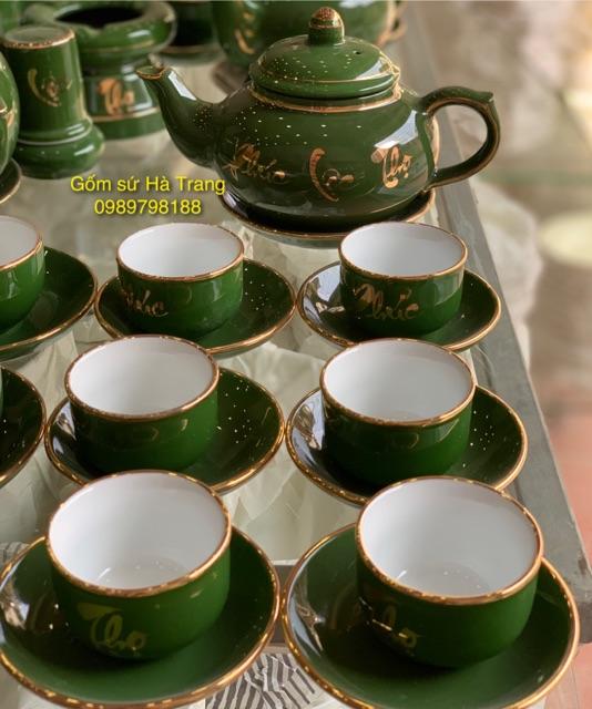 ✨Bộ ấm chén Phúc Lộc Thọ dáng chóp men lục bảo vẽ vàng Gốm sứ Bát Tràng cao cấp