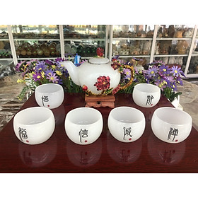 Bộ ấm trà bạch ngọc hoa sứ