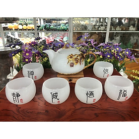 BỘ ẤM CHÉN ĐÁ BẠCH NGỌC TINH KHIẾT QUÀ TẶNG PHONG THỦY CAO CẤP - GOCPHONGTHUY.NET