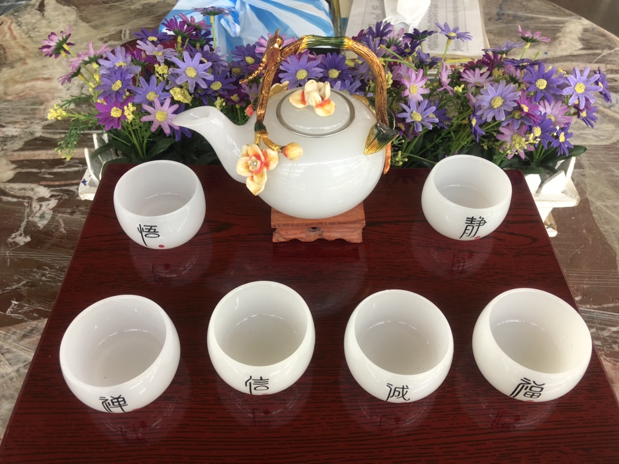 Bộ ấm trà bạch ngọc hoa mai