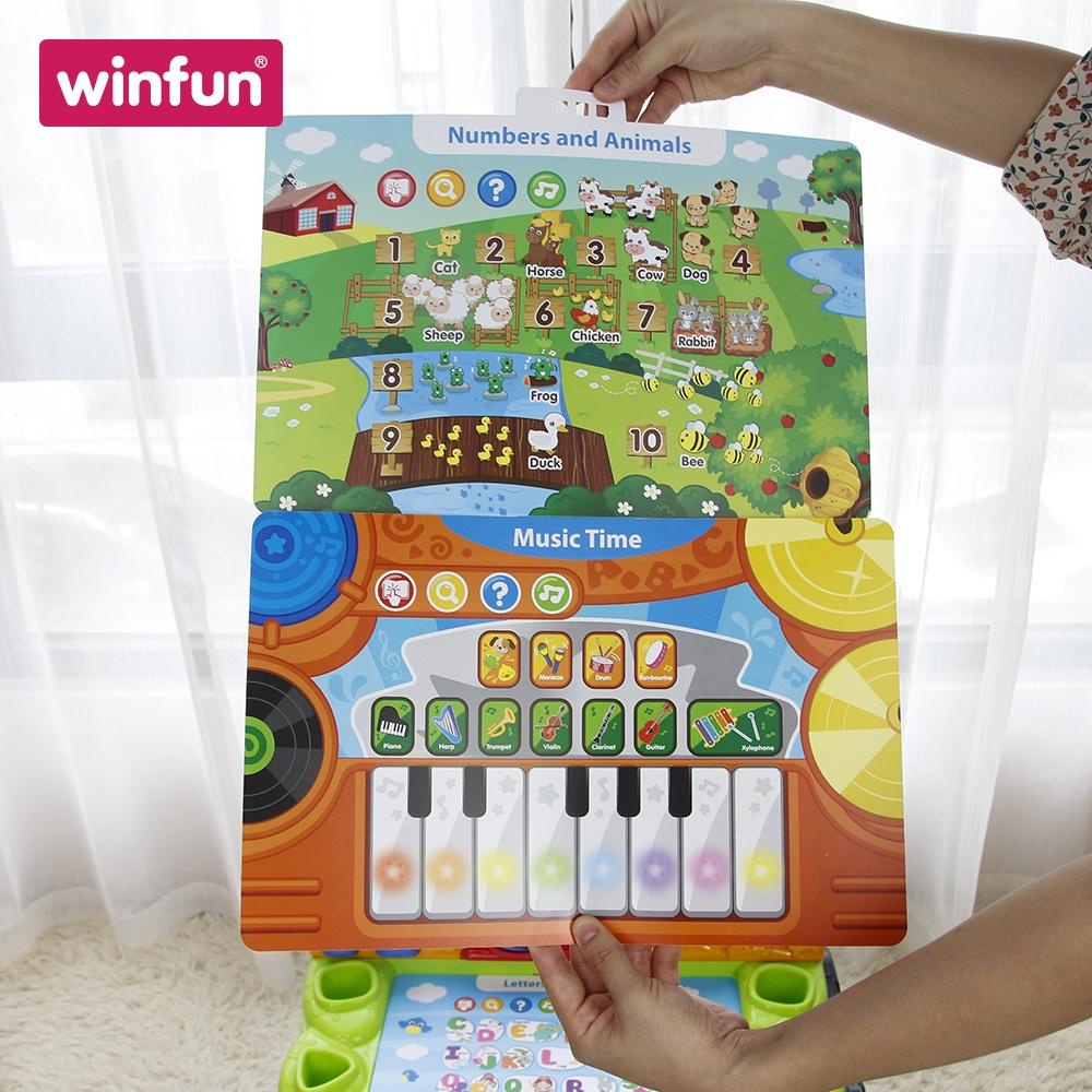 - Các nút bấm giúp bé rèn luyện ngón tay linh hoạt hơn =====THƯƠNG HIỆU WINFUN===== Winfun - Thương hiệu đồ chơi thông minh hàng đầu thế giới - Phát triển được phát triển bởi đội ngũ chuyên gia bao gồm các bậc phụ huynh là những nhà tâm lý học nghiên cứu và sản xuất. Với sứ mệnh sản xuất đồ chơi thông minh, an toàn, biến mỗi ngày của trẻ thơ trở nên đáng quý, đáng nhớ, Winfun mong muốn có thể xây dựng một thế giới đồ chơi hạnh phúc cho bé, cùng các bậc phụ huynh nuôi con lớn khôn từng ngày. Các sản phẩm của Winfun được thiết kế để kích thích sự phát triển tối đa 80% não bộ của bé từ 1 tới 3 tuổi, bao gồm các giai đoạn: từ 0 – 6 tháng; 6 – 12 tháng; 12 – 18 tháng; 18 – 36 tháng tuổi "Trẻ em có được niềm hạnh phúc thông qua vui chơi” HÃY ĐỂ sản phẩm của Winfun cùng với bé phát triển để kích thích trí tưởng tượng, sáng tạo và khả năng nhận thức bằng cách học thông qua các hoạt động vui chơi đó. Các dòng đồ chơi của Winfun làm bằng nhựa cao cấp đảm bảo chất lượng và độ an toàn khi các bé sử dụng, đạt chuẩn quốc tế của ASTM – American Society for Testing and Material, tức Hiệp hội Kiểm nghiệm và Nguyên liệu Hoa Kỳ. Sứ mệnh giúp bé yêu phát triển toàn diện của thương hiệu đồ chơi chuẩn “5 sao” WINFUN: thương hiệu đồ chơi chuẩn “5 sao” ra đời với sứ mệnh giúp bé yêu phát triển trên mọi phương diện nhận thức – cảm xúc – thể chất. "Winning is only half of it, having fun is the other half"