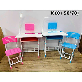 Mua tại TiktokBộ bàn ghế học sinh thông minh CTK10 Juno Sofa có đèn giá để sách ngang 80 cm Chất liệu: mặt bàn gỗ công nghiệp, mặt ghế và tựa lưng nhựa, khung sắt. Màu sắc: hồng, xanh dương Tính năng: Có đèn KT: 70x50 (cm)