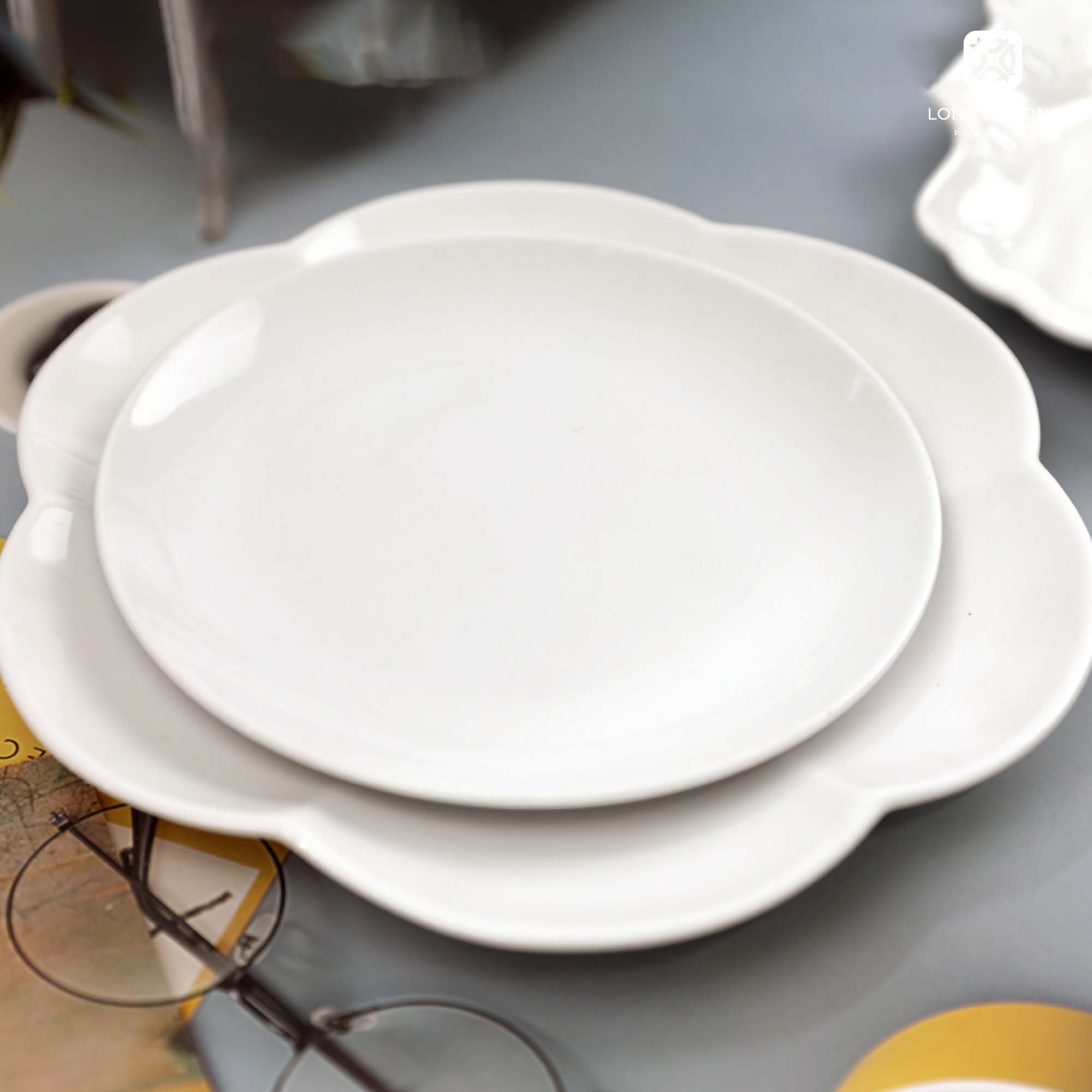 10 món bằng sứ trắng cao cấp tại với hình dáng độc đáo, sử dụng trong các dịp đặc biệt hoặc lễ tết. Các sản phẩm với hình dáng độc lạ, đẹp mắt thể hiện nét riêng của gia chủ, đồng thời cũng mang lại ấn tượng sâu sắc cho người dùng cơm vì các thiết kế sáng tạo, thể hiện sự tỉ mỉ, chỉnh chu của người chuẩn bị bữa cơm. Bộ sản phẩm nhiều mẫu đĩa kiểu với hình dáng tựa những cánh hoa.