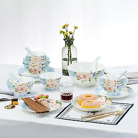 ✨Bộ bát hoa xanh sứ xương cao cấp nhập khẩu set 6 người 36 món CERAFLORAL 5540