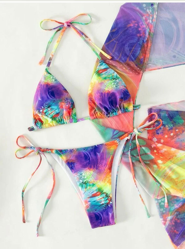 Bikini Tam Giác Kèm Khăn Lưới Chất liệu Polyester Đây là chất liệu không quá xa lạ đối với may đồ bơi nữ. Sợi Polyester rất nhẹ, có khả năng chống thấm và khô nhanh.