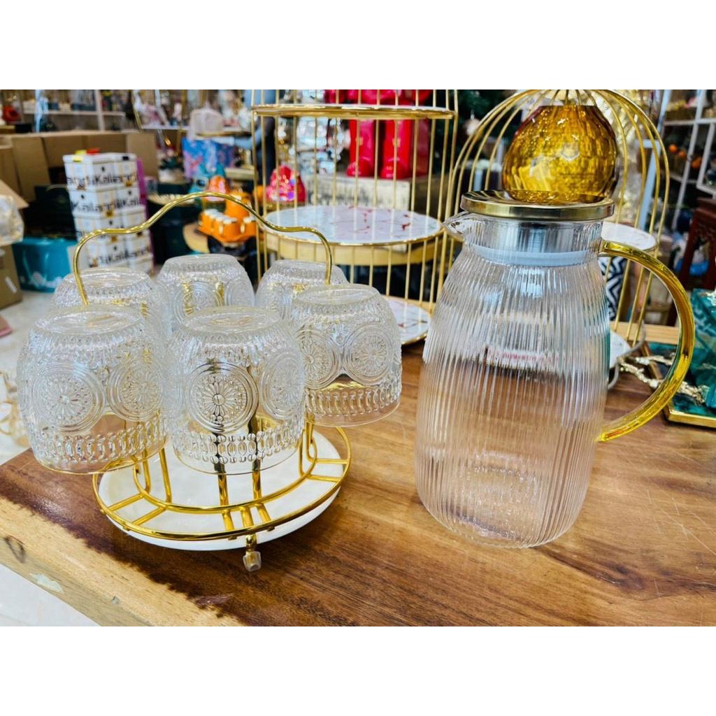 ✨BỘ BÌNH ĐỰNG NƯỚC UỐNG KEMG 6 CỐC VÀ GIÁ ÚP CỐC MÀU VÀNG SANG TRỌNG