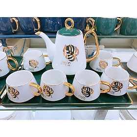 Bộ ấm chén kèm khay sứ pha trà cà phê siêu sang cho ngày Tết- Bộ cốc chén pha trà cà phê kèm khay bằng sứ