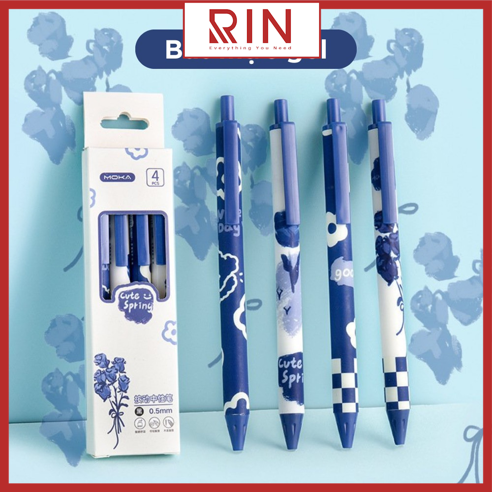 ✨Bộ bút mực Gel nước / Bộ bút bi mực gel mực đen ngòi 0.5mm dùng ghi chép dành cho học sinh, sinh viên, văn phòng – Bộ 4 cây