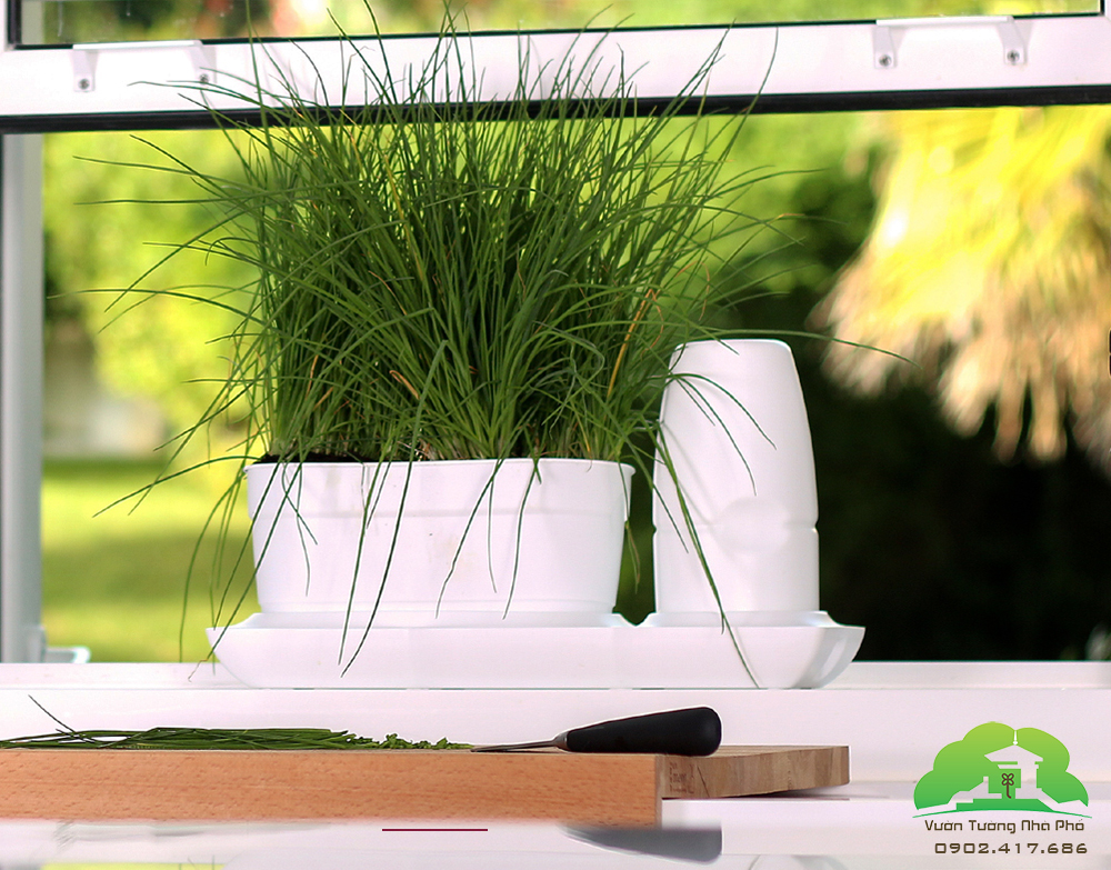 Chậu Trồng Rau Tự Động Tưới Basic S trồng rau hẹ và ớt trái xinh tươi