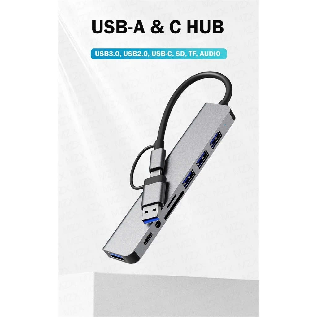 – Bộ chuyển đổi đầu đọc đa năng USB Type-C 8 in 1 cổng chuyển 8 trong 1: USB / Type-C ra USB 3.0, SD Card, TF Card, 2 cổng USB