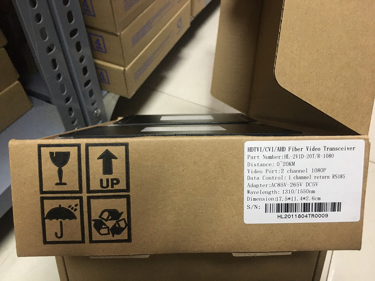 - Nguồn cấp: DC 5V cho Video converter quang này. Sơ đồ tham khảo thực tế : Thông số kĩ thuật của bộ sản phẩm: Feature Description Optical Fiber Type Single-mode/multi-mode fiber(9/125um) Fiber Connector FC Distance 20KM (Single-mode fiber) 2KM (Multi-mode fiber) Wavelength single mode Transmitter:T1310nm, R1550nm. Receiver:T1550nm,R1310nm. Wavelength multi mode 850nm Fiber Power -9~ -5dBm Rx Sensitivity -24dBm Video Video Interface Number 2 channels Physical Interface BNC Tx Input level >500mVp-p Rx Output level 1-1.2Vp-p Bandwidth of Video 50M(720P) 100M(1080P) Differential Phase ≤ 2 Differential Gain ≤ 2% Input/Output Impedance 75 Ω Surge Protection 10/700us:(1-1.5kv) Sampling Digit 10 Bit Sampling Frequency 60Mhz Data Physical Interface The industry standard connecting terminal Interface Signal RS485/RS422/RS232/Manchester Baud Rate 0-400Kbps BER < 10 -9 Operation Mode Full duplex / half duplex Environmental Demand Environmental Temperature -30℃~+75℃ Storage Environment -40℃~+85℃ Relative Humidity 0-95% ( no condensation) Mean Time Between Failures(MTBF) ≥100 000 hours EPS DC5V
