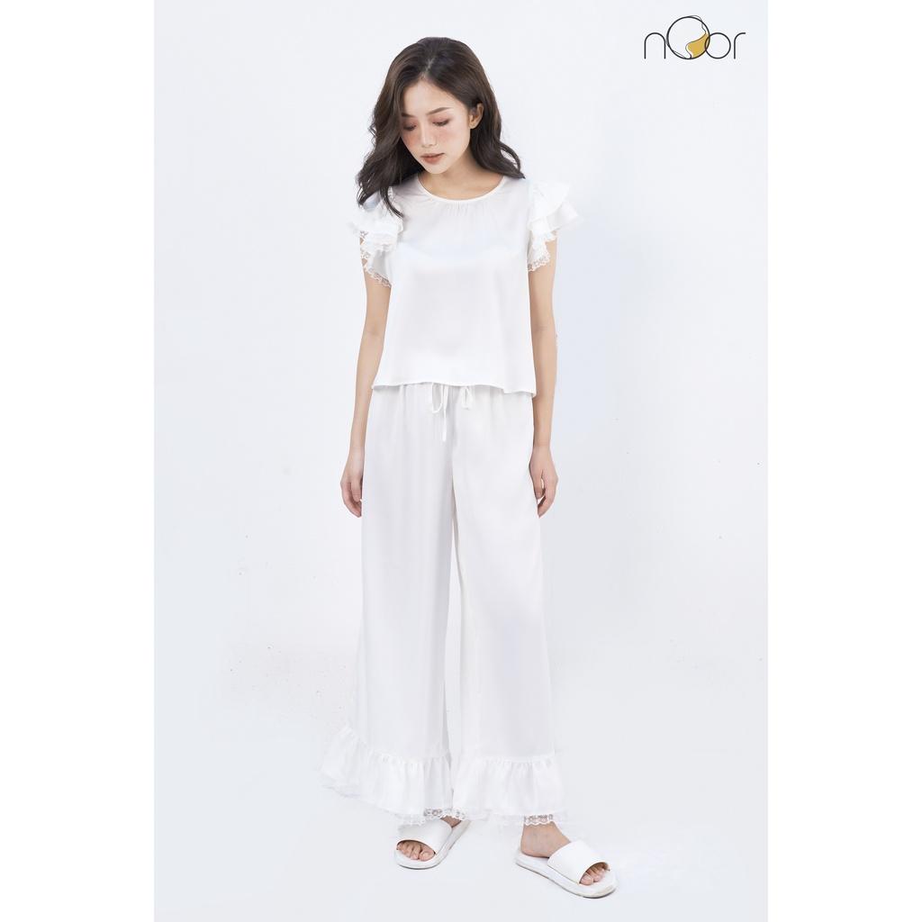 Đồ bộ mặc nhà WANNABE BDS41 đồ bộ quần dài phối áo 2 dây cúp ngực viền ren gợn sóng mang lại vẻ gọn gàng nữ tính Đồ bộ mặc nhà phi lụa cao cấp
