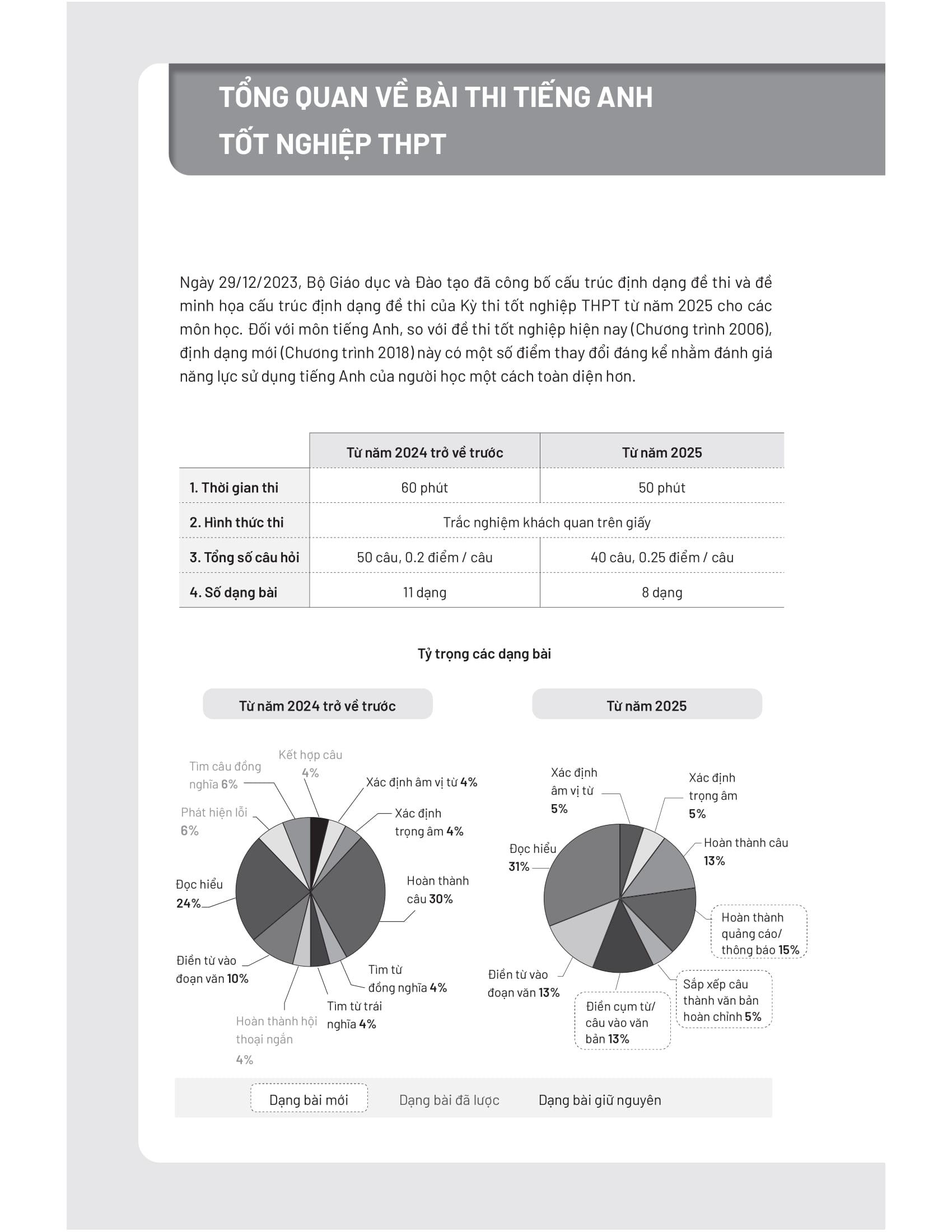 Cùng với những thay đổi trong phương án thi tốt nghiệp THPT, cấu trúc định dạng đề thi của từng môn cũng có những điều chỉnh nhất định. Bởi vậy, việc hiểu rõ cấu trúc đề thi và có những bước ôn tập phù hợp sẽ giúp người học tập trung ôn luyện đúng trọng điểm, rút ngắn thời gian học và đạt kết quả tốt nhất.
