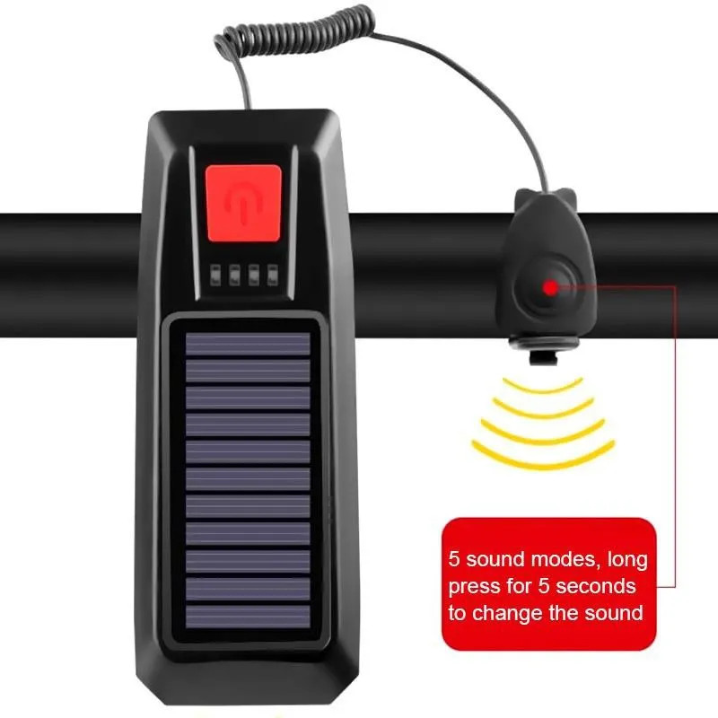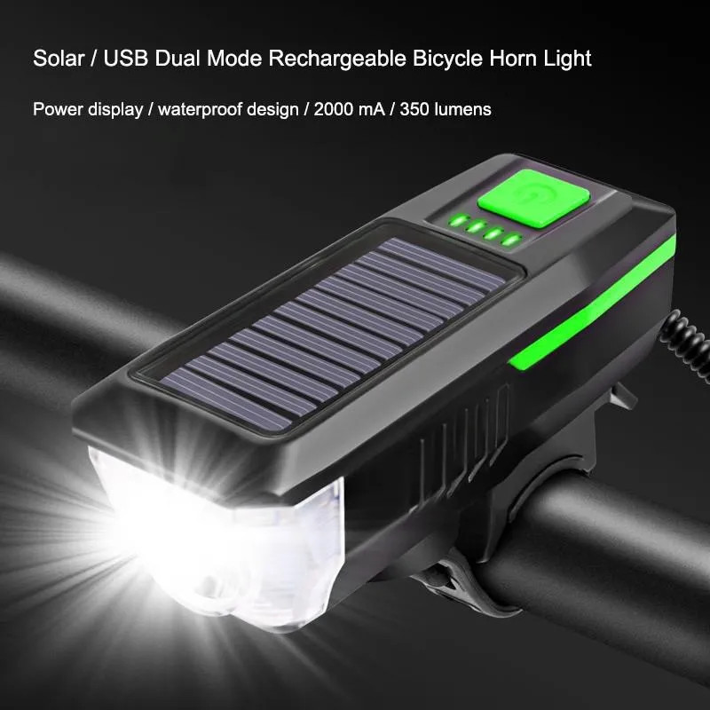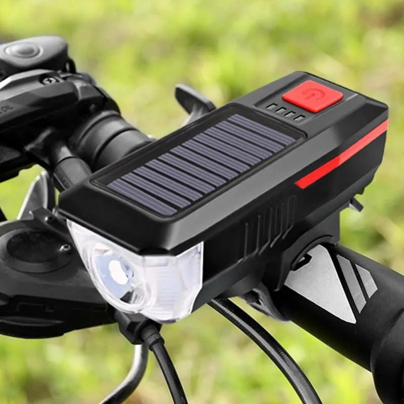 Đèn LED Xe Đạp Năng Lượng Mặt Trời Kèm Còi, Đèn Xe đạp Sạc bằng Năng Lượng Mặt Trời - USB Đèn Xe Đạp có Chuông Còi, Đèn Pin Xe Đạp chống nước có 3