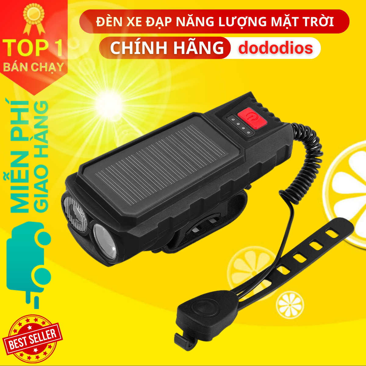Đèn xe đạp thể thao năng lượng mặt trời - hãng dododios