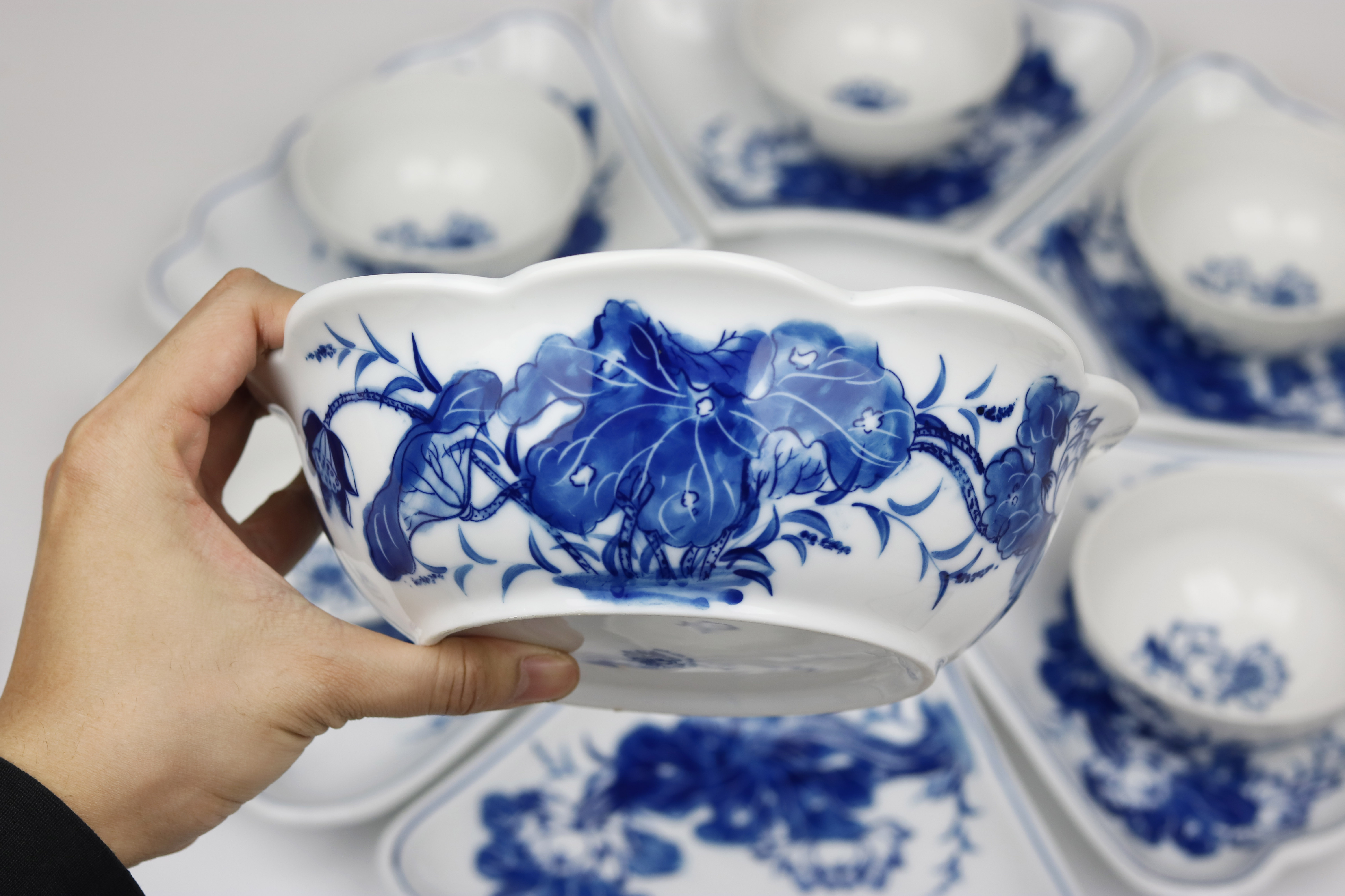Bộ đồ ăn men lam vẽ hoa đào Gốm sứ Bát Tràng cao cấp không chì Bộ đồ ăn gồm 15 món như hình 6 bát cơm 1 bát mắm 1 đĩa muối 1 đĩa