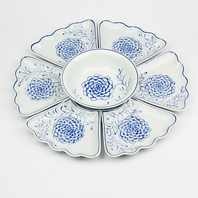 Bộ đồ ăn Bát Tràng - Sản phẩm bao gồm: 6 bát cơm, 1 mắm, 1 muối, 1 tô 16, 1 tô 18, 1 đĩa tròn 14, 1 đĩa tròn 16, 1 đĩa tròn 18,