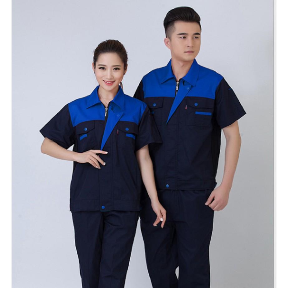 ✨Bộ đồ bảo hộ lao động kaki loại dày ngắn tay khóa kéo SHUNI 010B phong cách Hàn Quốc