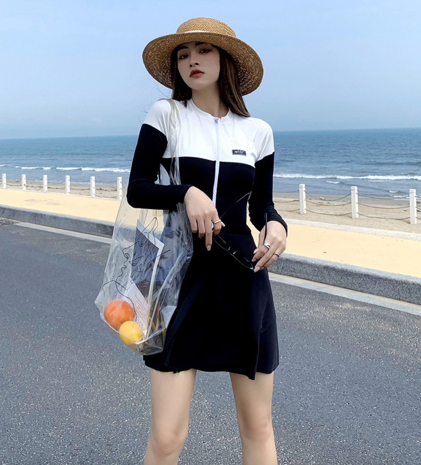 ✨Bộ đồ bơi bikini nữ 1 mảnh kín đáo đi tắm biển giấu bụng váy liền áo dài tay chống nắng - B.27